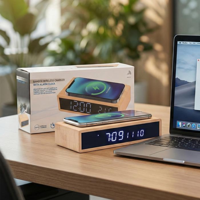Promosyon Bambu Kablosuz Şarj Standı fiyatımız baskı ve KDV hariç liste fiyatıdır.