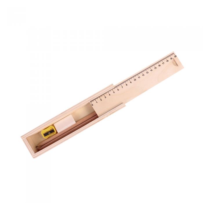 Cetvel, kurşun kalem, kırmızı kalem, silgi, kalemtraş