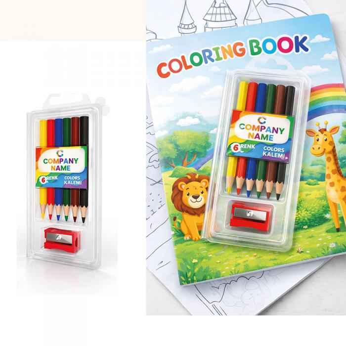 Promosyon Kalemtıraşlı Yarım Boy Kuru Boya (6 Adet) fiyatımız baskı ve KDV hariç liste fiyatıdır.
